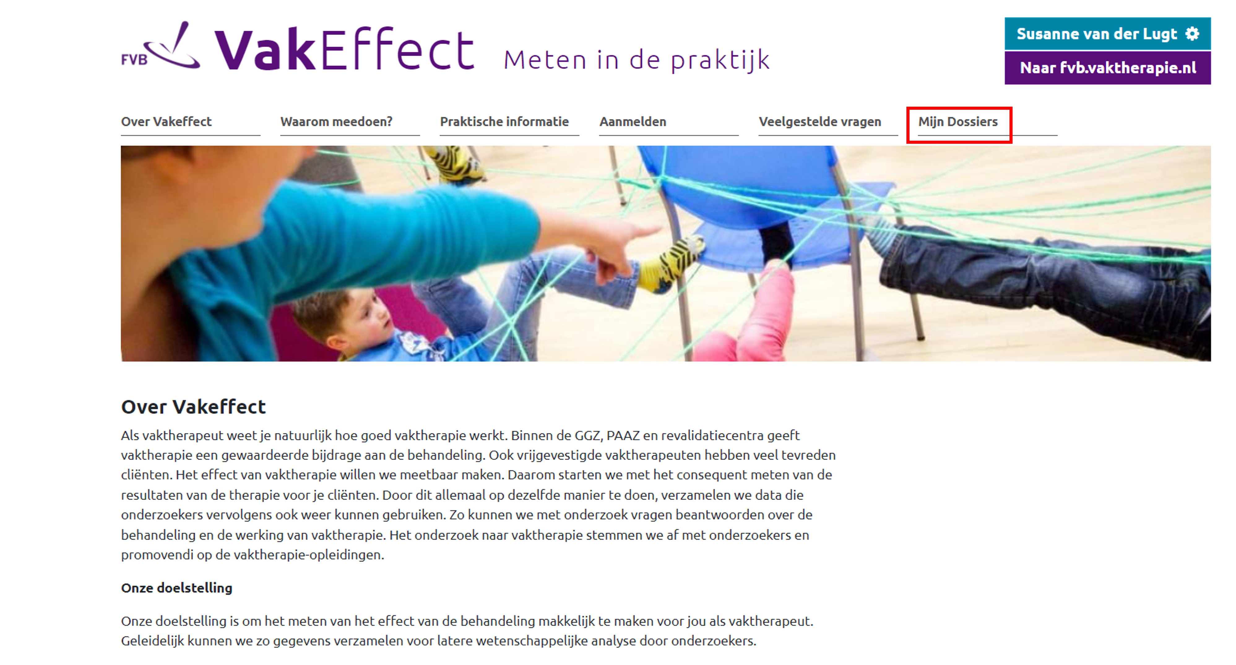 Bij de start van de behandeling laat je je cliënt de vragenlijst voor de eerste keer invullen. Je logt hiervoor in op deze website vakeffect.vaktherapie.nl met je vaste inloggegevens (die je ook gebruikt om in te loggen op fvb.vaktherapie.nl).