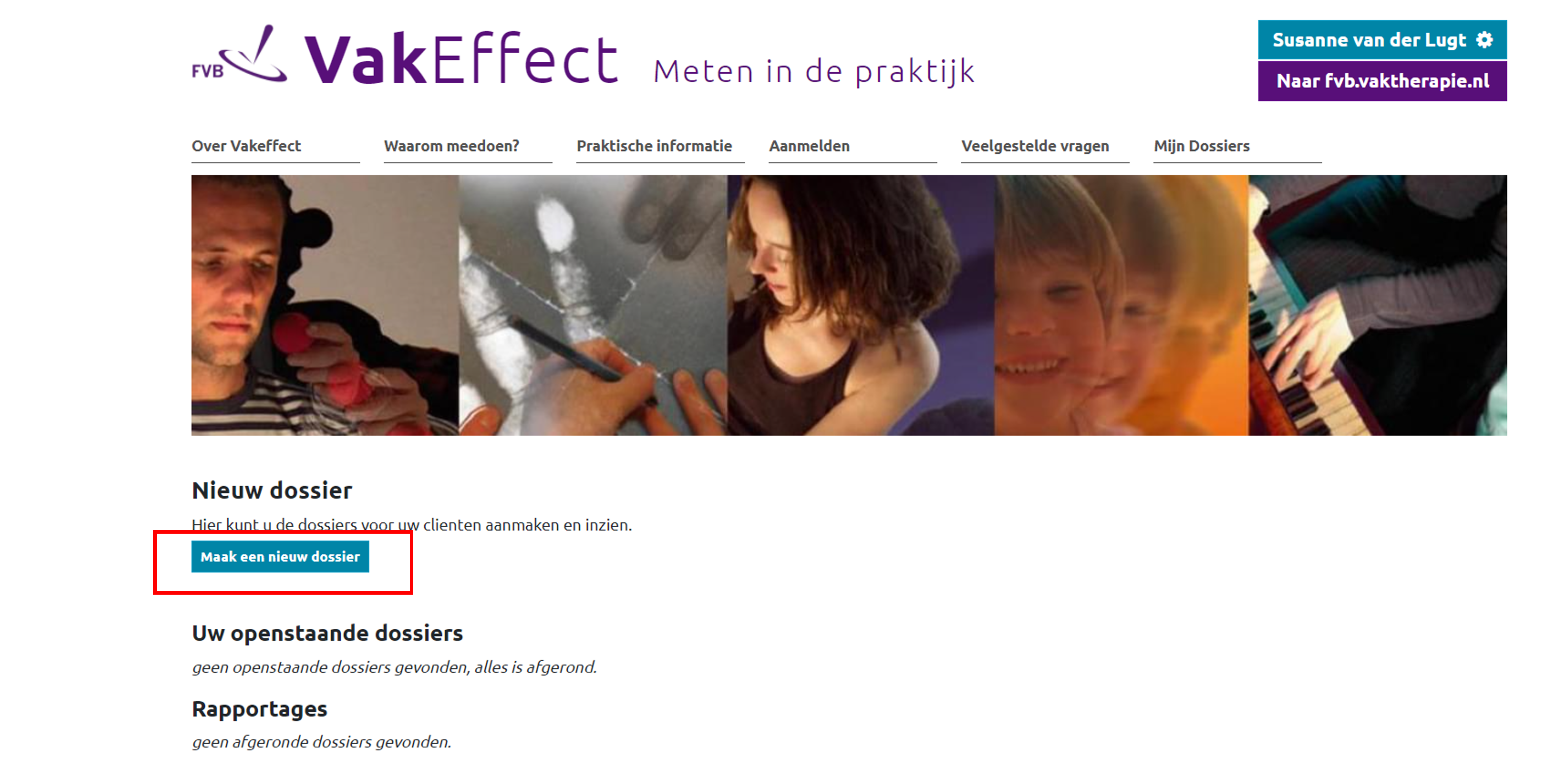 Je gaat vervolgens naar de pagina Mijn dossiers en kiest dan voor 'Maak een nieuw dossier'.